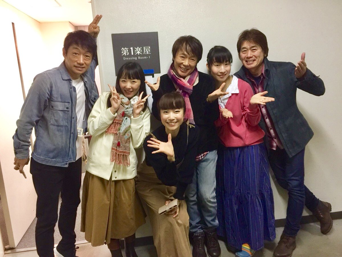 府中の森芸術劇場の公演(坂田おさむ・つのだりょうこさん・いとうまゆさん)無事終了いたしました。仲間が公演に駆けつけてくれましたよ。関沢圭司さん、坂田めぐみさん、速水けんたろうさん、ひなたおさむさん。み~んな素敵な仲間だよ。